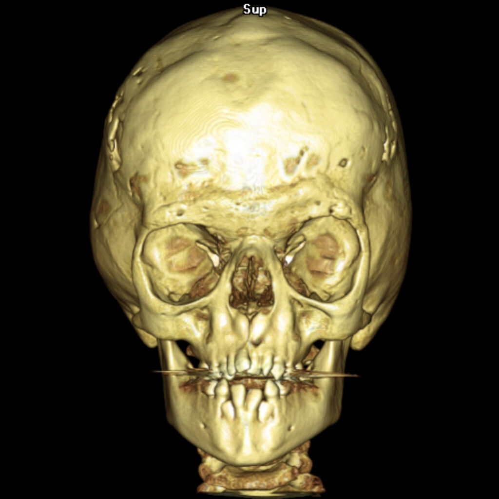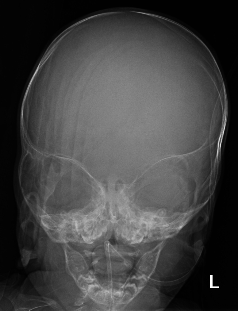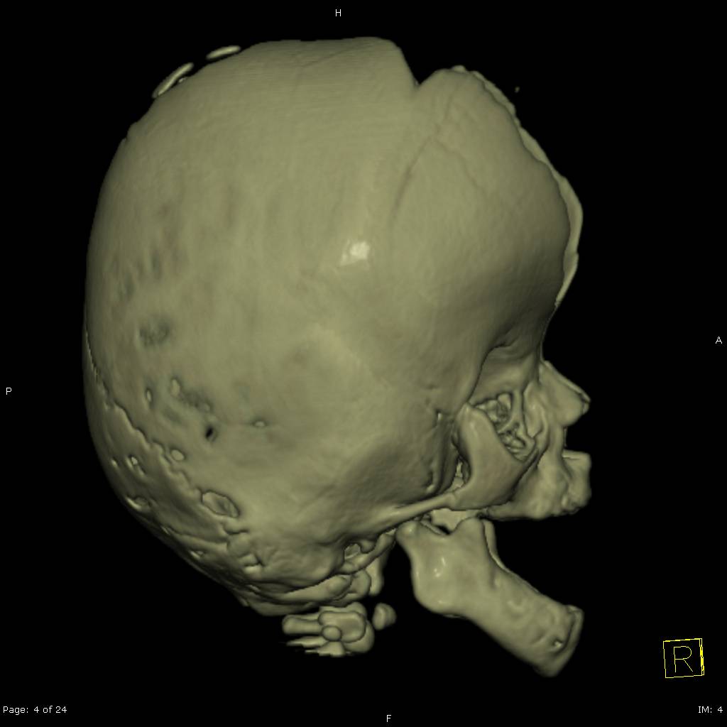 - Craneosinostosis: Cierre prematuro de las suturas craneales, evidenciado por crestas a lo largo de las suturas.